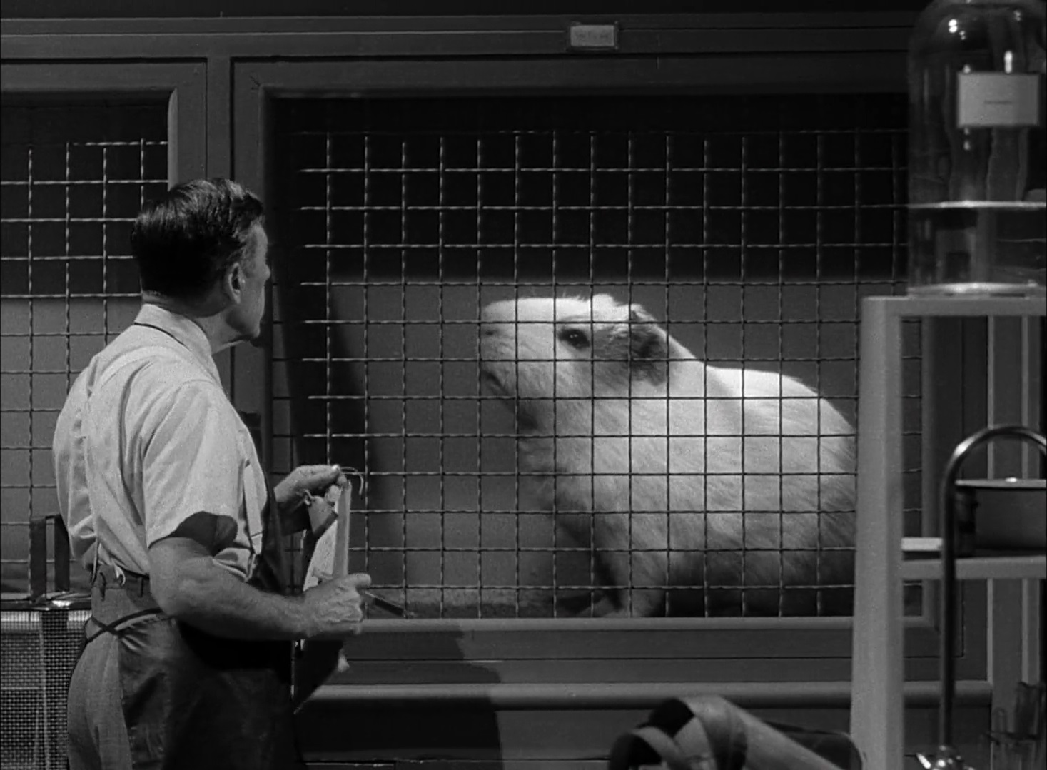 Jack Arnold directed Tarantula two years before The Incredible Shrinking Man (also featuring a climactic fight with a tarantula). Mad scientist Dr. Gerald Deemer unwittingly unleashes the spider on the town of Desert Rock, Arizona while using radioactive elements to try and solve world hunger. Physician Dr. Matt Hastings teams up with scientist Steve Clayton (a woman!) to try and stop the monster.