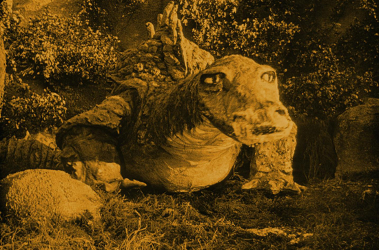 If the idea of the dinosaur in early cinema was indebted to the Crystal Palace sculptures, the idea of the dinosaur to this day is completely inseperable from that established in Jurassic Park. Even in 1993, Spielberg knew that his dinosaurs shouldn’t have had scales. However, he decided to build on an idea from Michael Crichton’s source material in which the dinosaurs were resurrected by combining the prehistoric DNA with that from creatures like frogs.