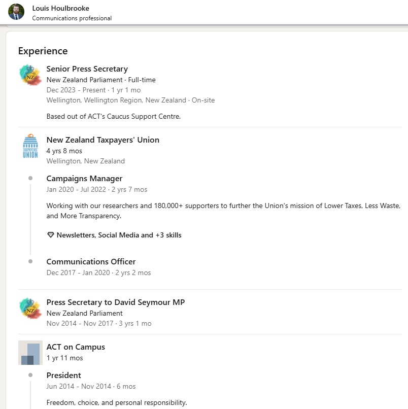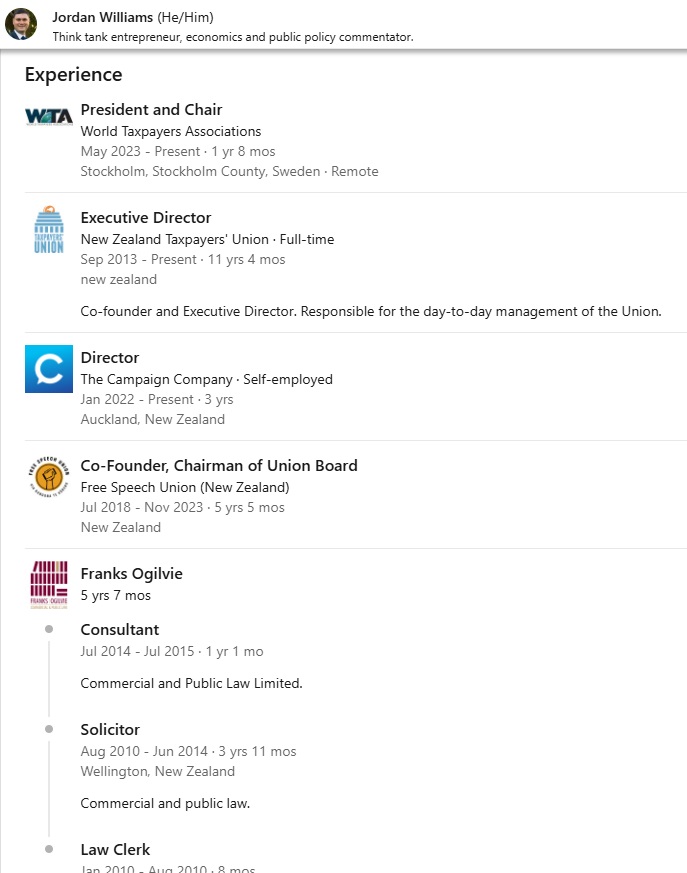 This is most obvious with groups like The Taxpayers’ Union (TPU) and the New Zealand Initiative who are official partners of the Atlas Network. This isn’t a secret: odious figures like Jordan Williams will talk quite openly about it while David Seymour will accuse anyone who draws any conclusions about connections to ACT, “conspiracy theorists”.